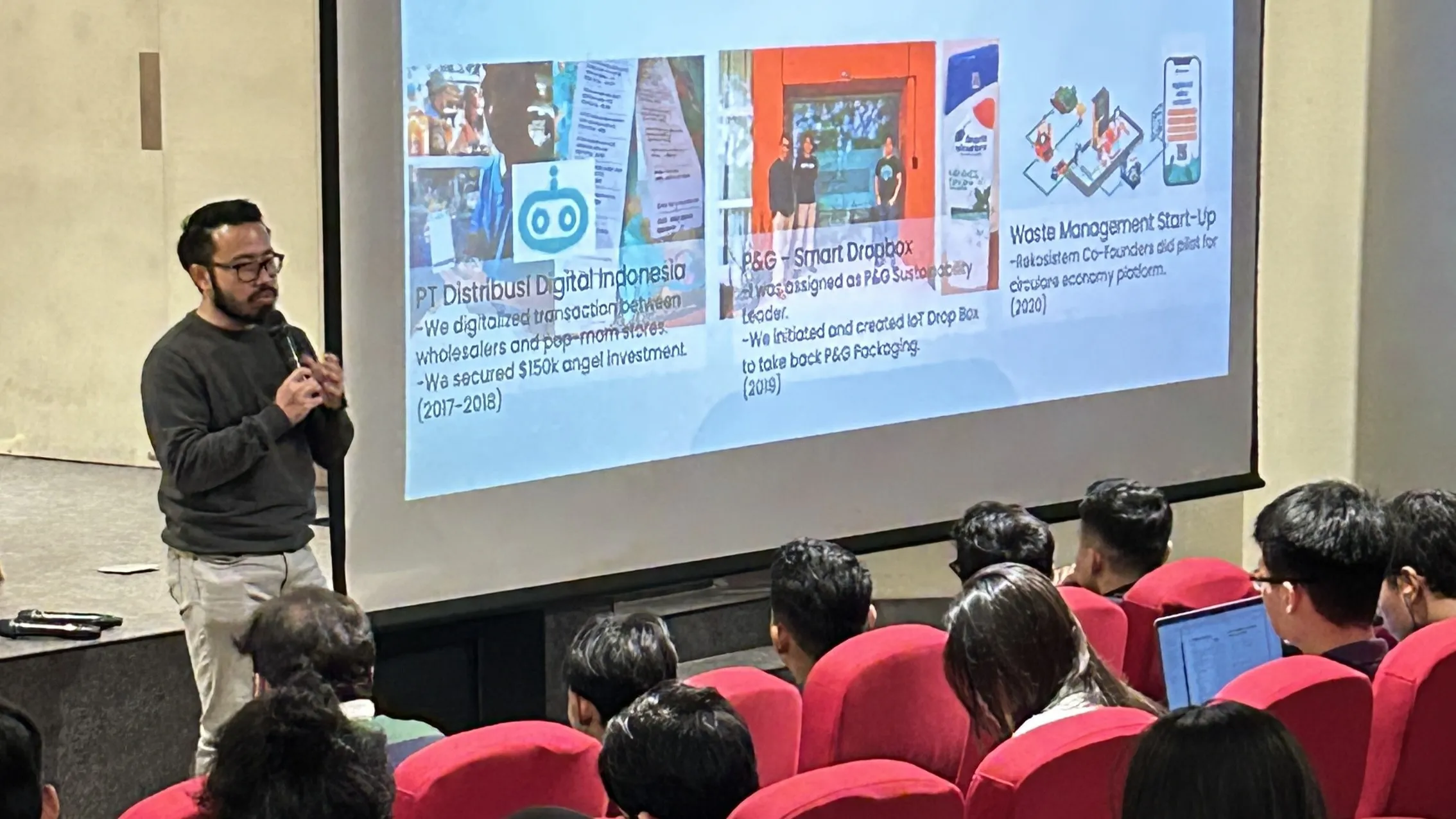 Ernest Christian Layman from our portfolio company, Rekosistem, also shared insights on how identifying market needs in sustainability and leveraging technology can create impactful solutions. His talk resonated with students, highlighting how their tech skills can address real-world challenges.